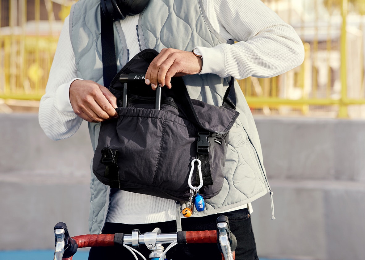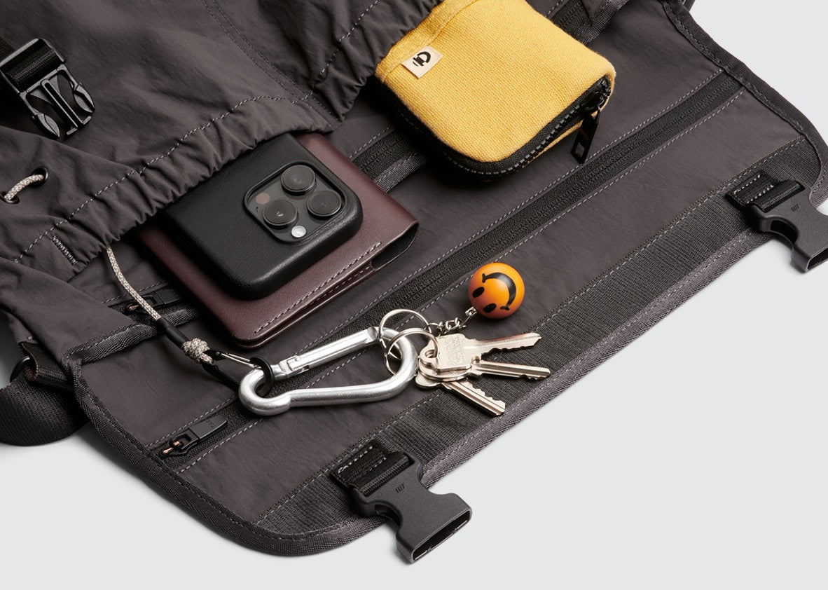 - Internal Apple AirTag slip pocket