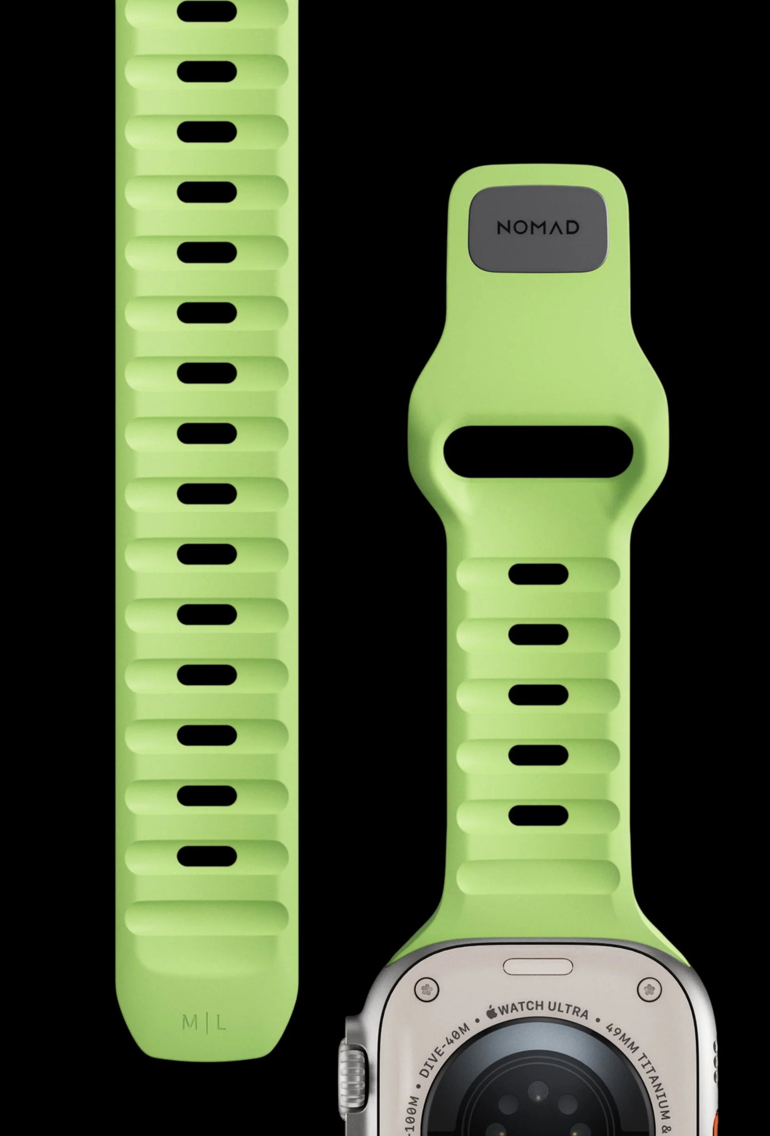 Sport Band gives your Apple Watch a modern, athletic look that seamlessly transitions from the office to the backcountry. Its lightweight, breathable design ensures all-day comfort and its low-profile pin-and-tuck mechanism guarantees secure closure.
