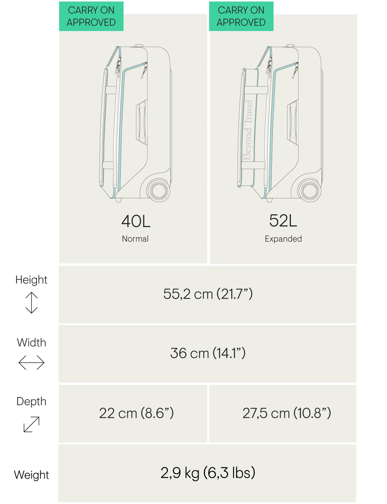 - Pack more in: From 40L to 52L