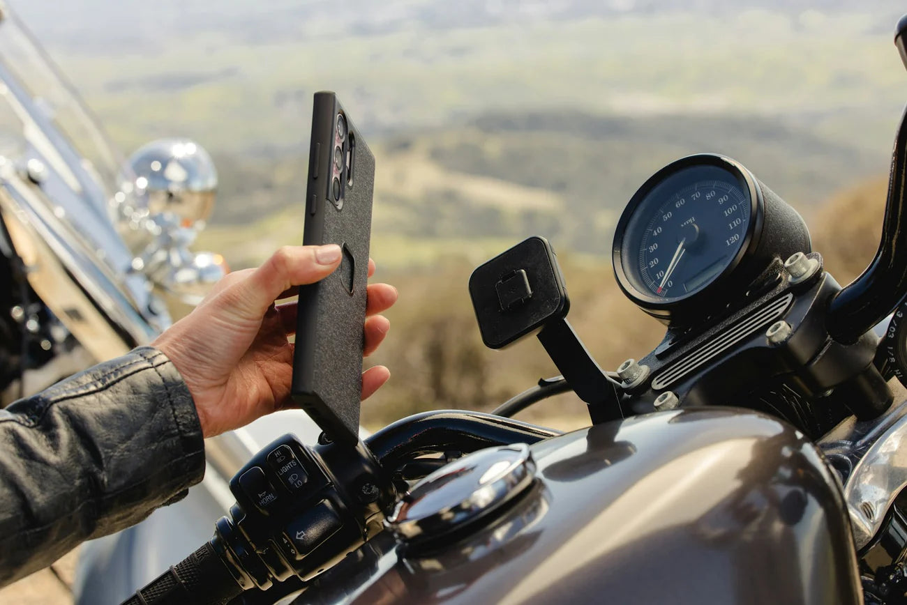 Having a bulky, cumbersome phone mount on your bike is annoying, distracting, and unsafe. Peak Design Motorcycle Mounts maximize your phone's security and usability with a minimal footprint.