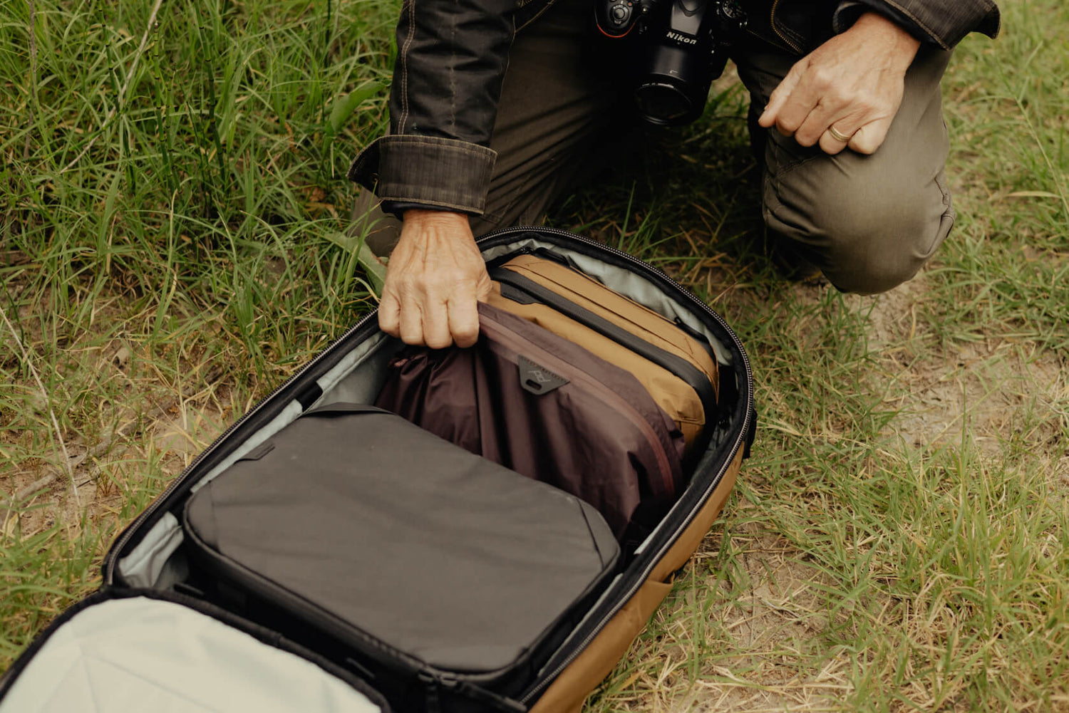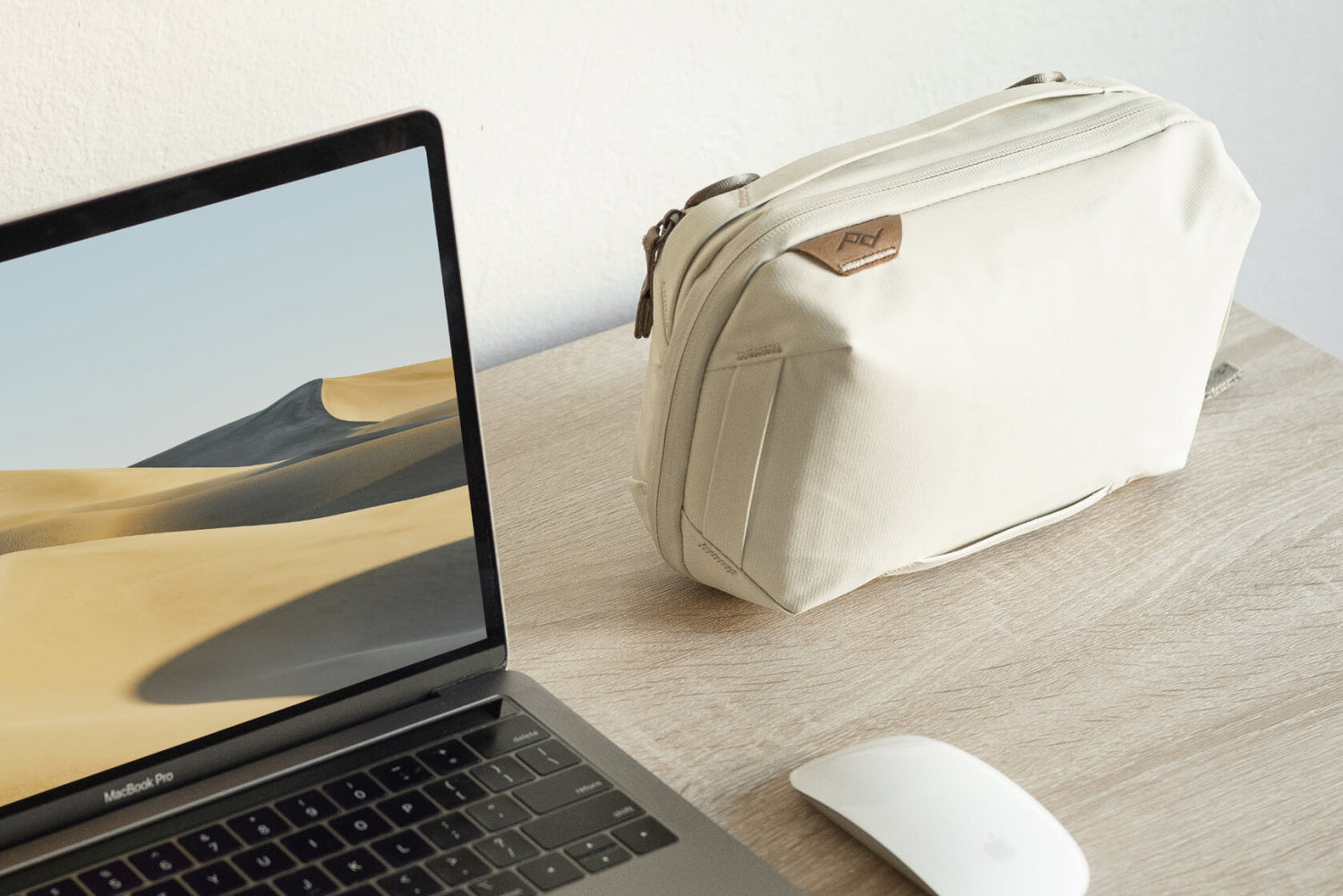 Whether storing cables, everyday gear, or travel essentials, Tech Pouch offers unrivaled organization and ease of access. Origami-style pockets create enormous spatial efficiency, letting you pack more into a smaller space while keeping your items neatly organized and easy to find. Elastic accessory loops keep items like pens, knives, SD cards, and batteries always within reach. Exterior handles and a clamshell-style opening make this pouch a delight to hold and access. External zip pocket has a cable pass-through for easy device charging. The 400D recycled nylon canvas shell is weatherproof and aesthetically clean.