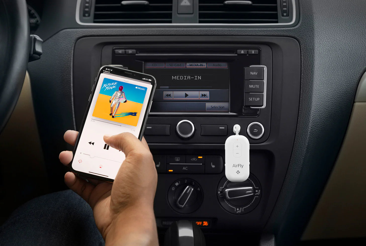 Connect your AirPods or other Bluetooth headphones to any headphone jack—like those on airplanes, treadmills, or gaming devices.
