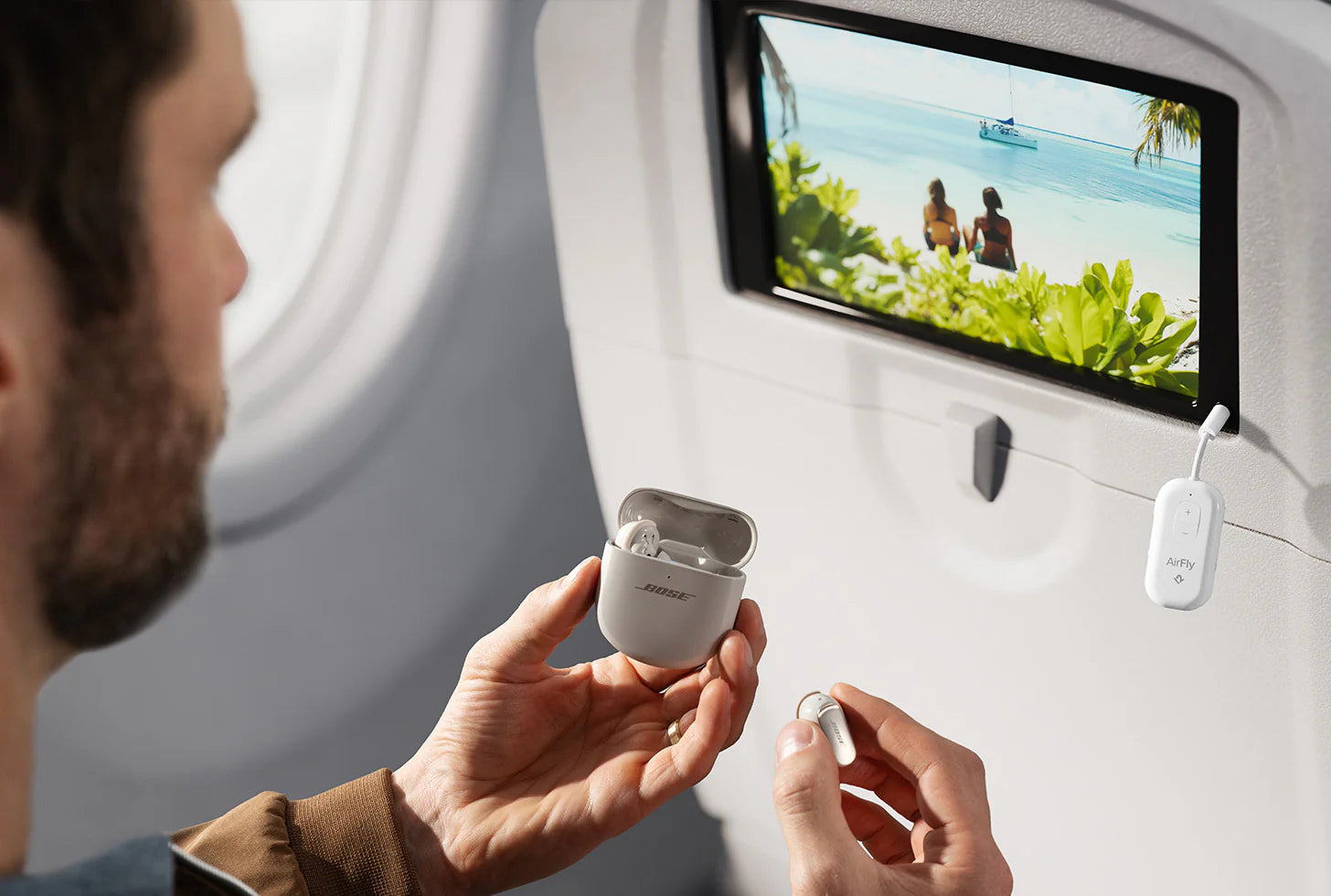 - Enjoy in-flight entertainment with your favorite wireless headphones