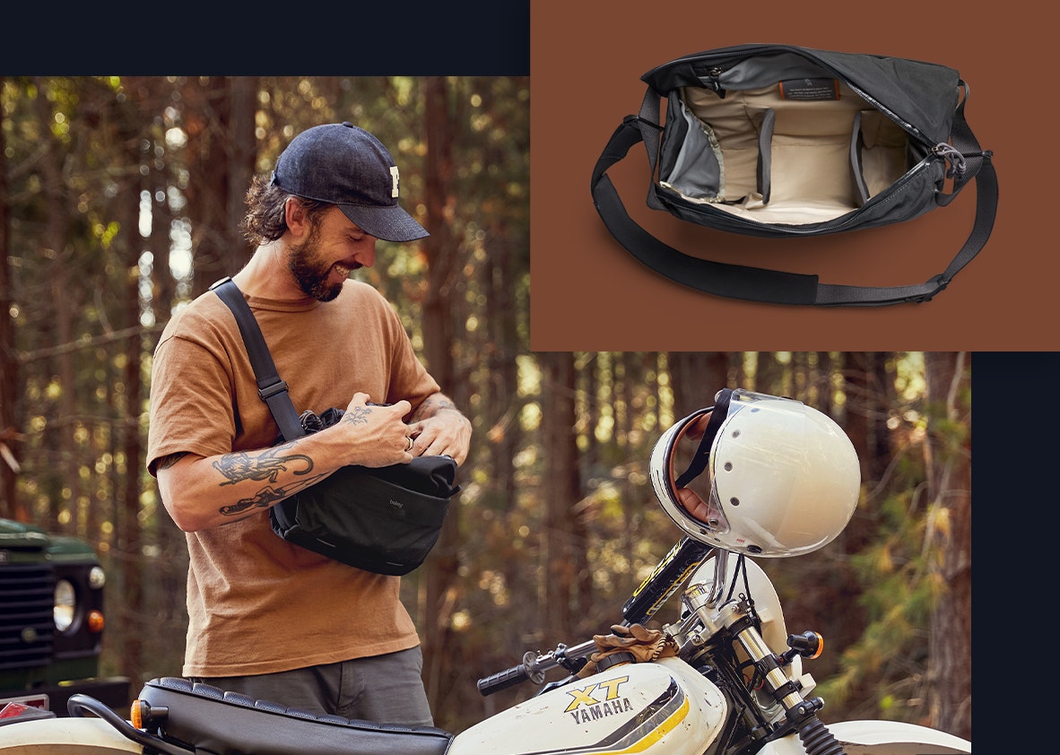 - Self-compressing gussets adapt to your load, and keep the bag slim