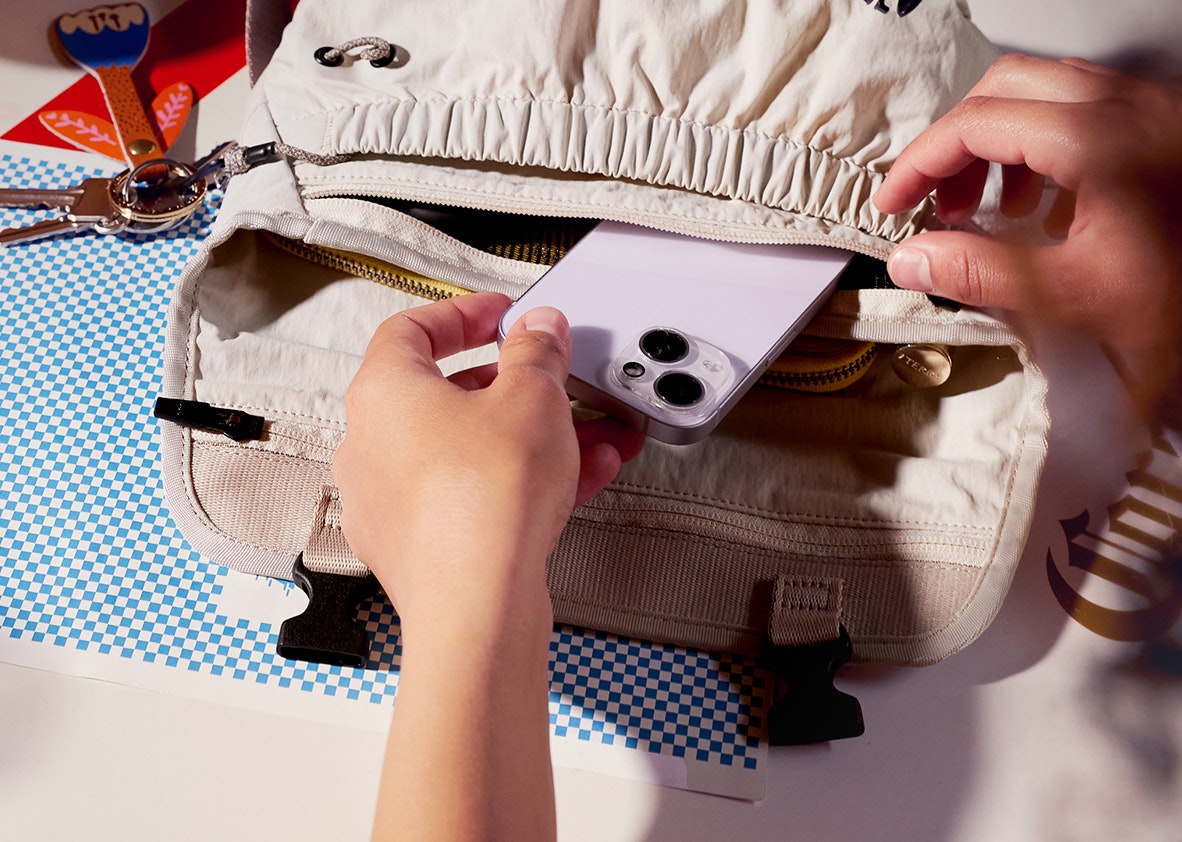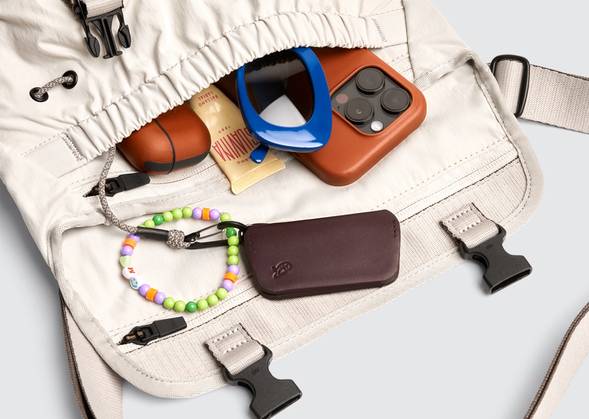 Just pop the side buckles to access the zippered and springy stretch pockets hidden beneath the flap – for outside-the-bag organization.