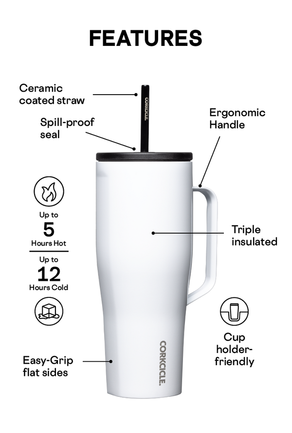 The triple-insulation can keep your cold drinks cold, and hot drinks hot. The Cold Cup XL can keep drinks cold up to 12 hours, and hot up to 5 hours.