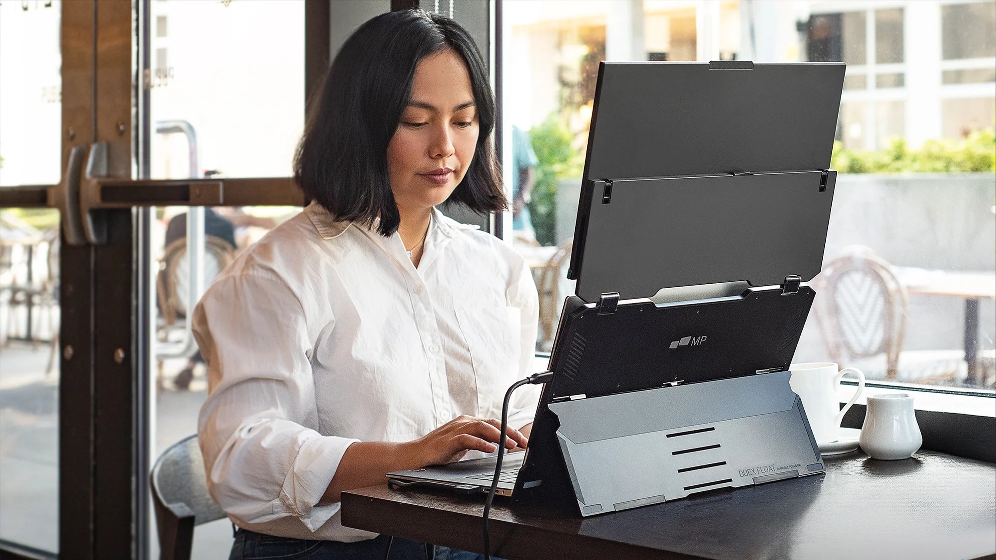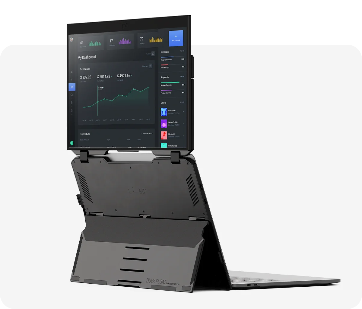 Duex Float is a convenient, yet affordable, stacked portable monitor that allows you to work on the go using multiple screens. Plus, you'll boost productivity and achieve ergonomic alignment, thanks to the stacked design.