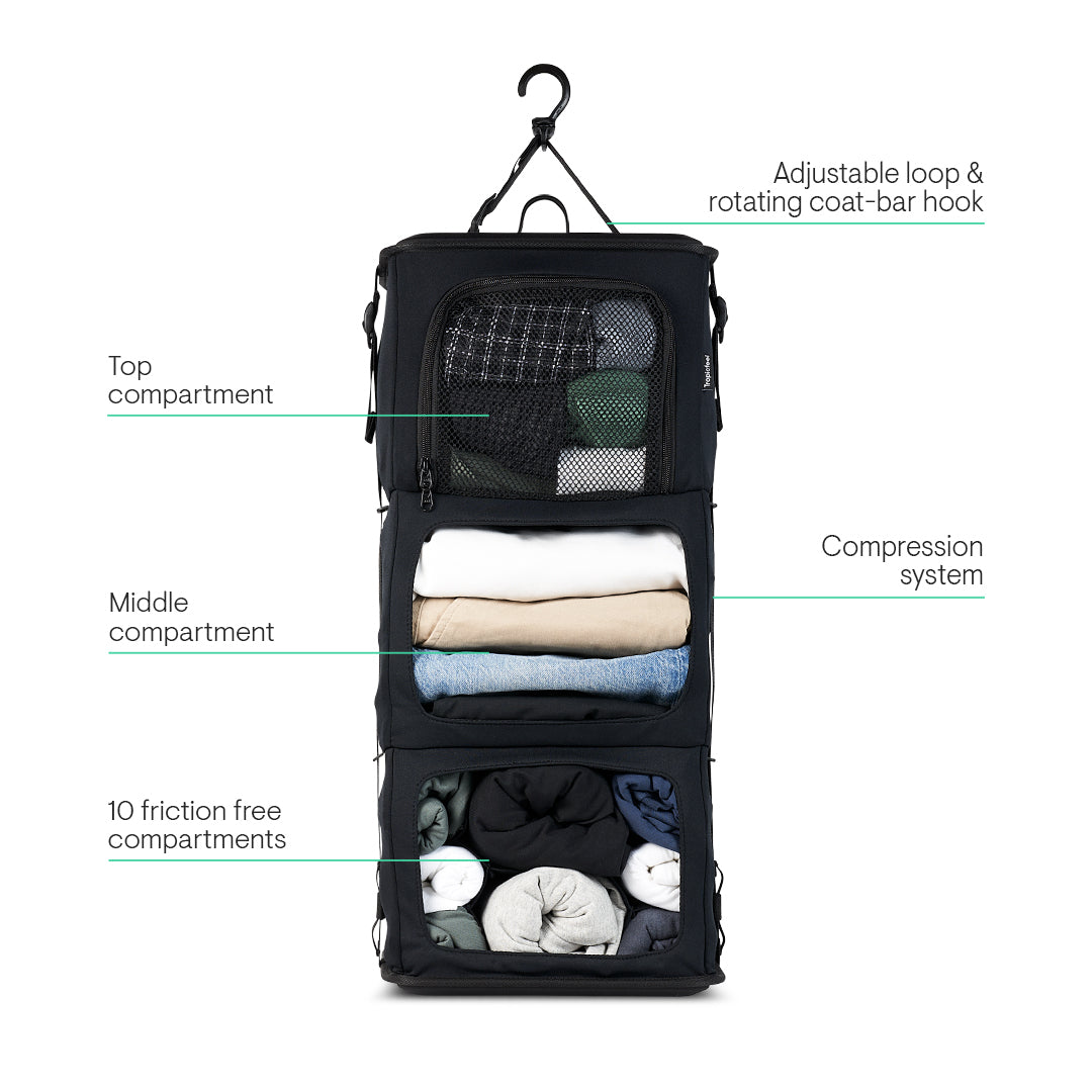 We all hate packing and unpacking, that’s why we created a wardrobe system that makes it easy and ensures you enjoy the process while staying organized and saving space.