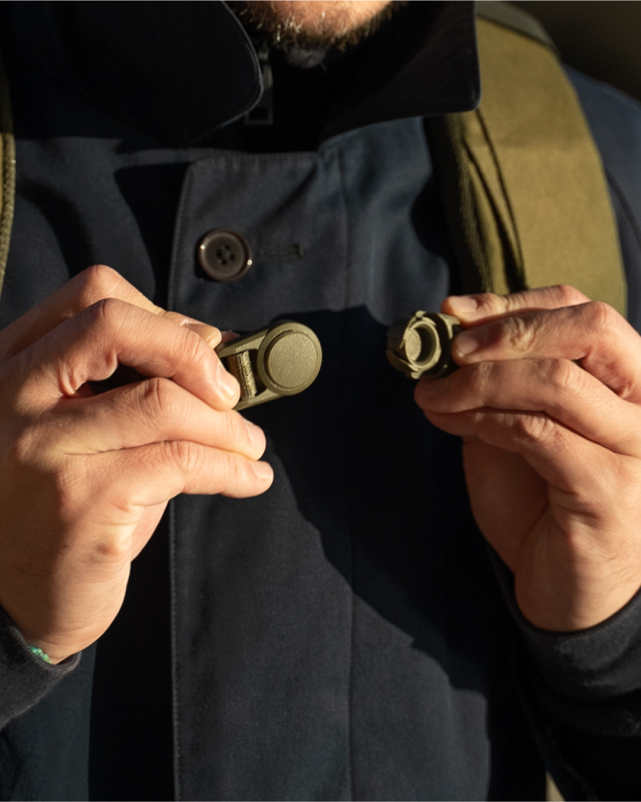 Magnetic swivel type sternum strap adds stability in motion. Adjustable, stowable and easily removable for those looking for a cleaner profile.