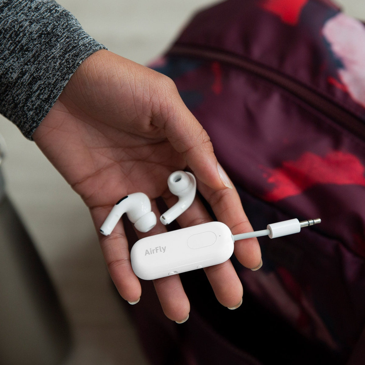 AirFly Pro is a wireless adapter that lets you use your wireless headphones or earbuds in places that only have a headphone jack like airplanes and treadmills. Plug this tiny transmitter into the headphone jack to listen to in-flight movies or TVs at the gym.