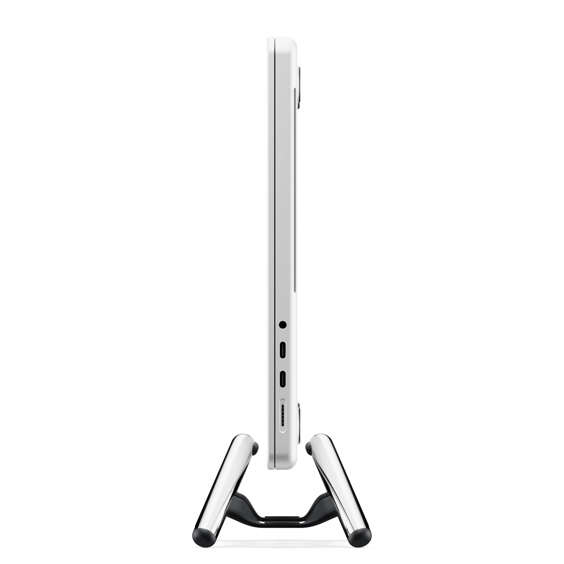 Inspired by modern architecture, BookArc Flex is truly a minimalist work of art, that uses the weight of your laptop to secure the arcs against your laptop, allowing for universal compatibility without the need for inserts. This design focus is even reflected in the finishes, with a matte black and matte white inspired by interior design trends, and a beautiful premium chrome edition with a mirrored finish that reflects the room it's in.