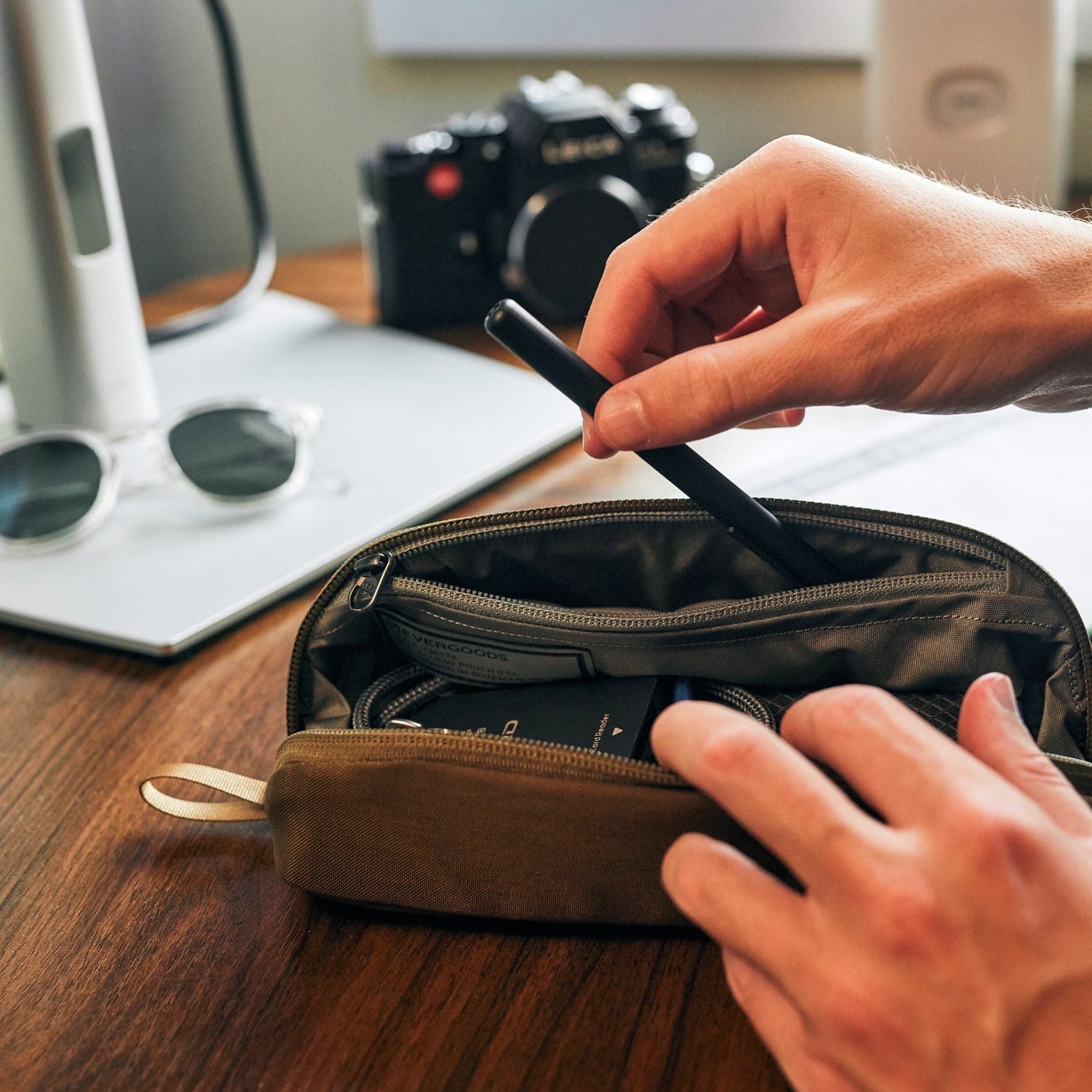 The latest and smallest addition to our Access Pouch series, CAP0.5 offers our signature 3D patterning and intuitive organization in a new silhouette. Built in a torpedo shape with an end-to-end zipper and 360° of padding, it protects your contents when closed and sits flat when open for quick access as a tray. Flexible and variable internal pockets allow for a multitude of loadouts, from a toiletry kit to pencil case to travel tech pouch to a tool caddy. Sized to fit into a variety of our backpack’s pockets for carry on the go.