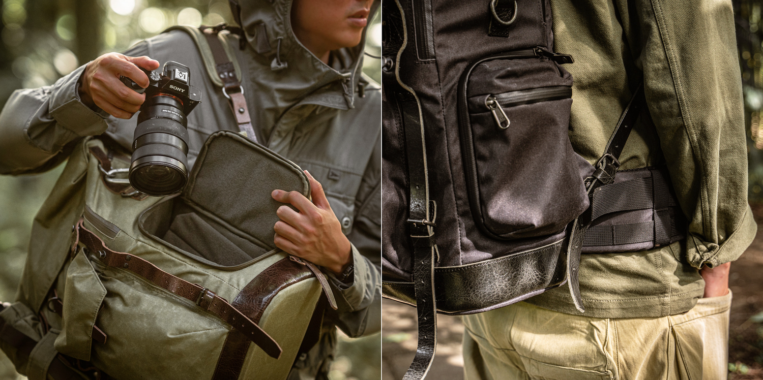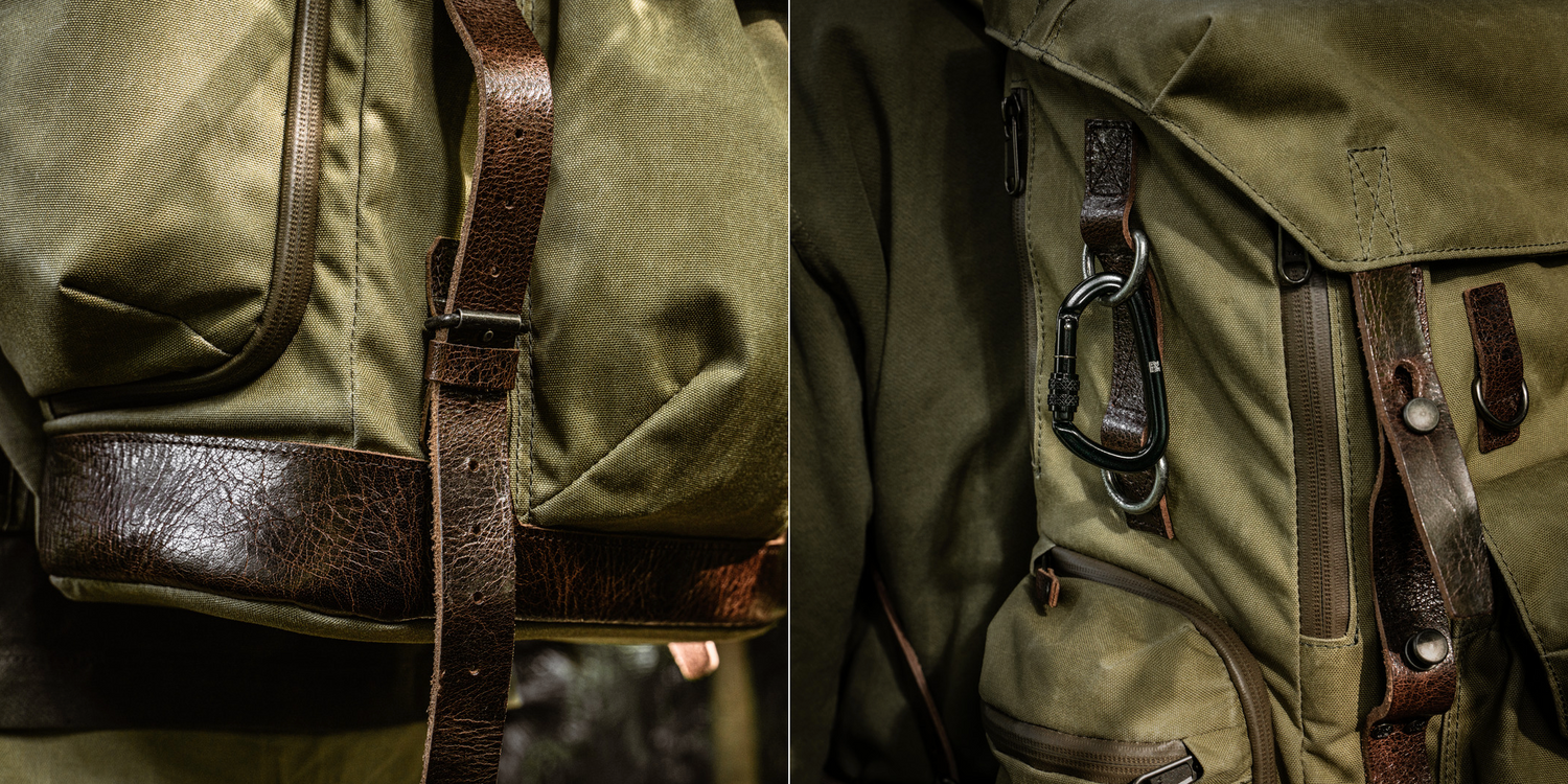 Built with vintage metal hardware, distressed rivets, and sturdy cowhide, the New Commander not only substituted traditional heavy waxed canvas for lightweight water-repellent Dualcoat fabric but also added YKK Watertight Zippers on each of its pockets making the backpack weatherproof and more!