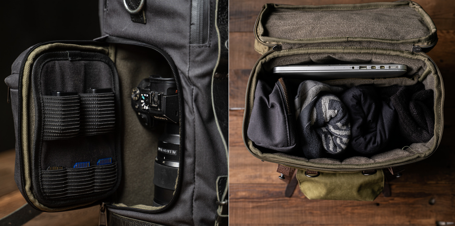 The upper compartment can be fitted with an inner camera bag for storing more camera equipment.