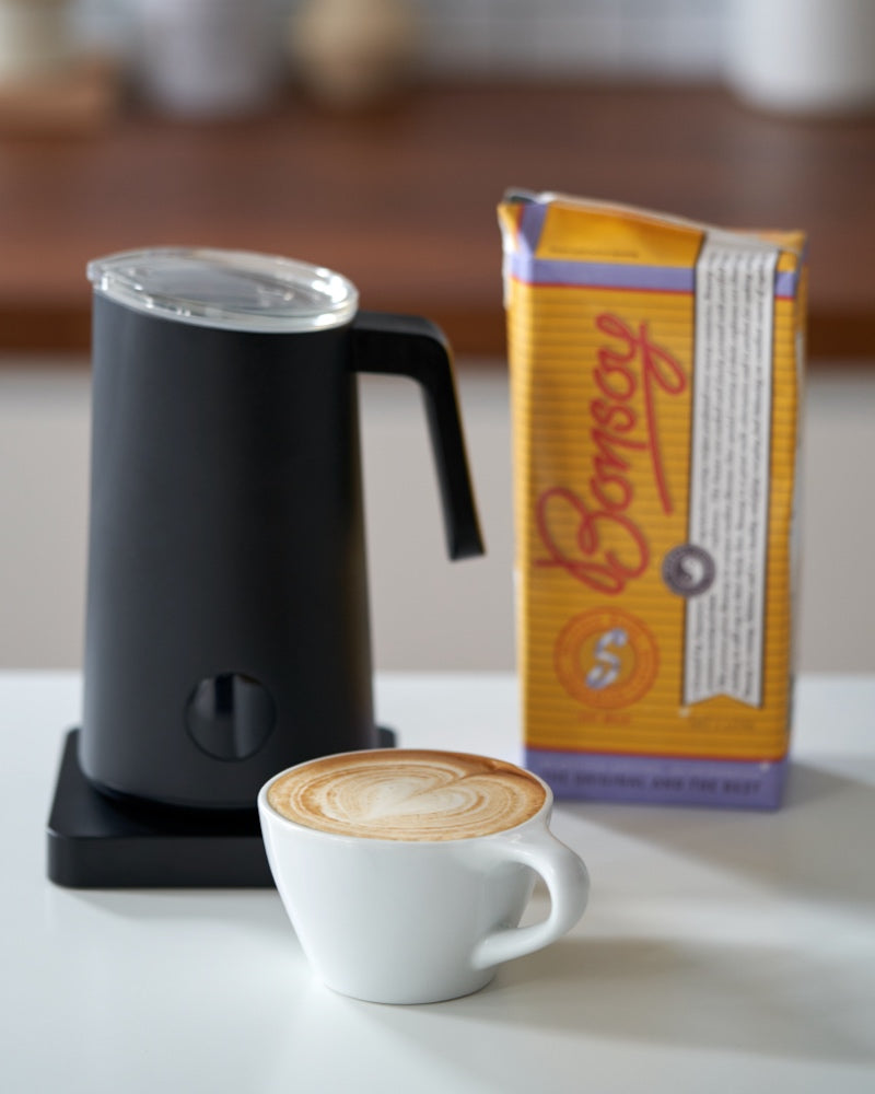 A premium cafe-quality cappuccino is now within reach regardless of how you prepare your espresso: handheld, lever, pod machine, automatic, Aeropress, mocha pot, or whichever espresso maker you love. The only talent you need to hone is your latte art pouring technique.
