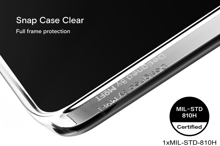 Withstands the test of time. The clear Snap Case passed a rigorous 168-hour yellowing resistance test equivalent to over a full year of uv exposure, guaranteeing its resilience against sunlight, sweat, and color staining.