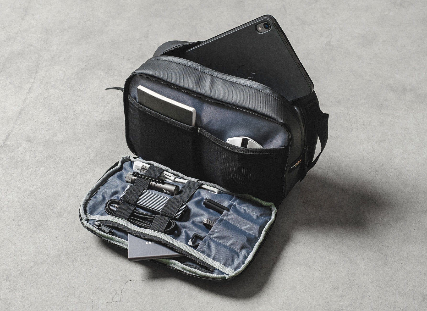 With stealth in mind, the back of our Tech Kit features a hidden valuables pocket that fits your passport, credits cards, wallet, phone or other valuables.
