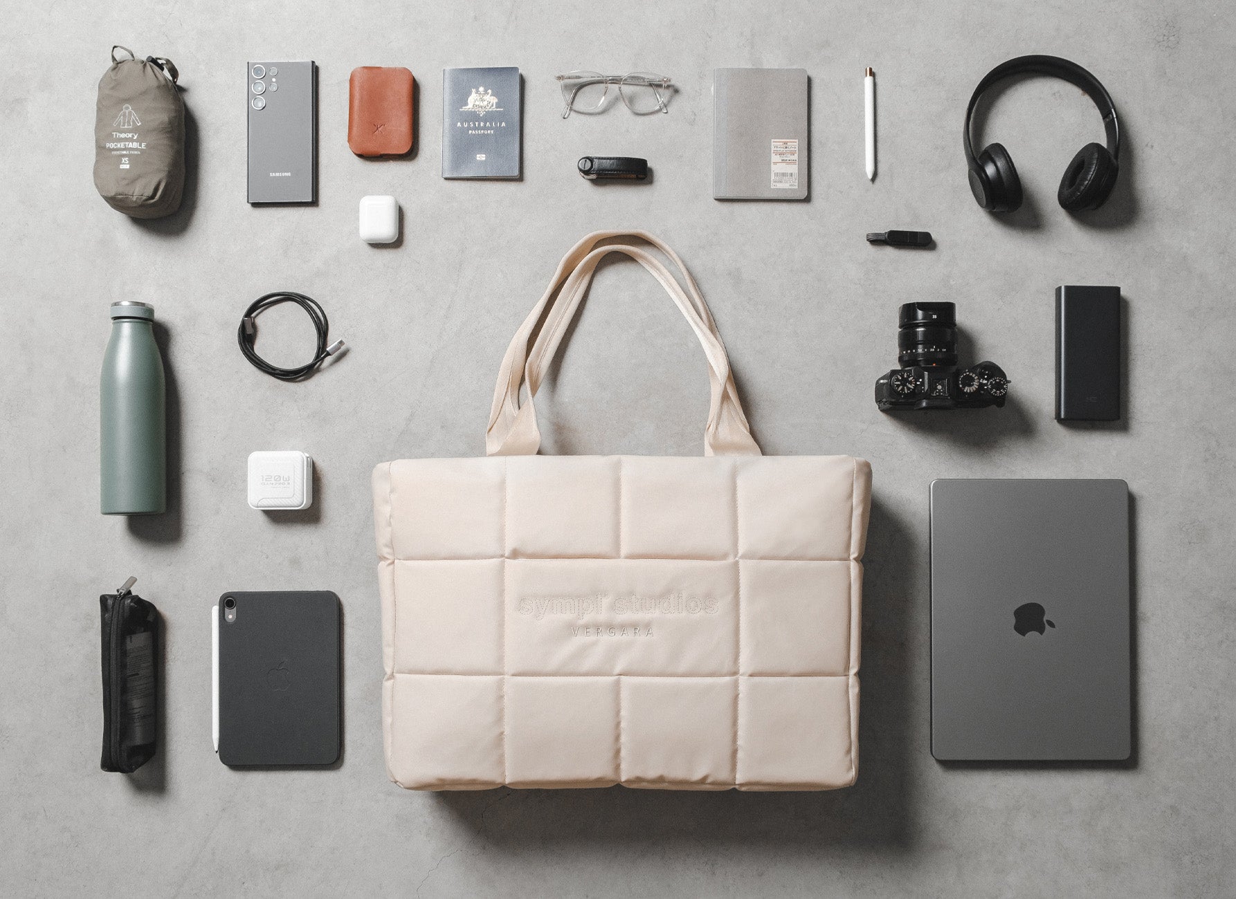 The Vergara Tote was designed to allow me to move effortlessly through a long day of travel, and helps take me anywhere and everywhere. From a day at the beach, on a photo-shoot, in crosstown traffic, or out at night, my tote is perfect for any occasion. Featuring intentional designs that protect and store your laptop, tech, valuables, and elements of life. Inspired by how I live, this bag allows me to let go, and be present in all my experiences. xoxo Love, Victoria