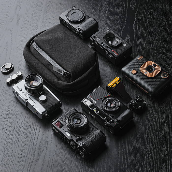 - Fits an iPhone 14 Pro Max & a point-and-shoot camera (e.g. Fuji X100F)