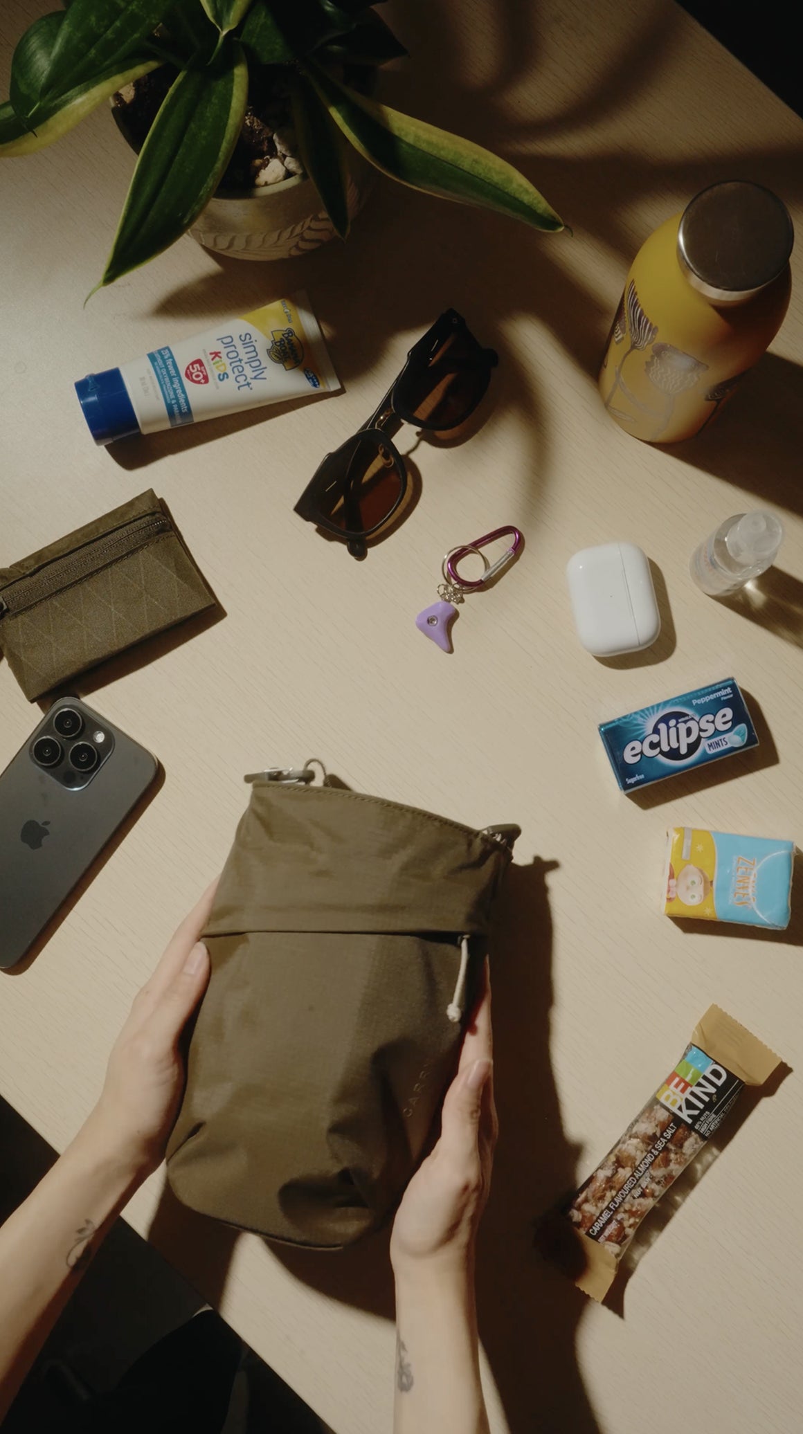 Whether you’re packing an umbrella, snacks, a compact camera, Bottle Sling tucks them neatly across three pockets.