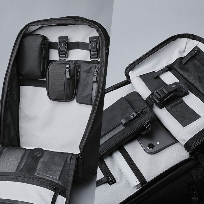 - Axoflux Recycled Fabric (POLY 600D) in Black (Cool Grey lining)