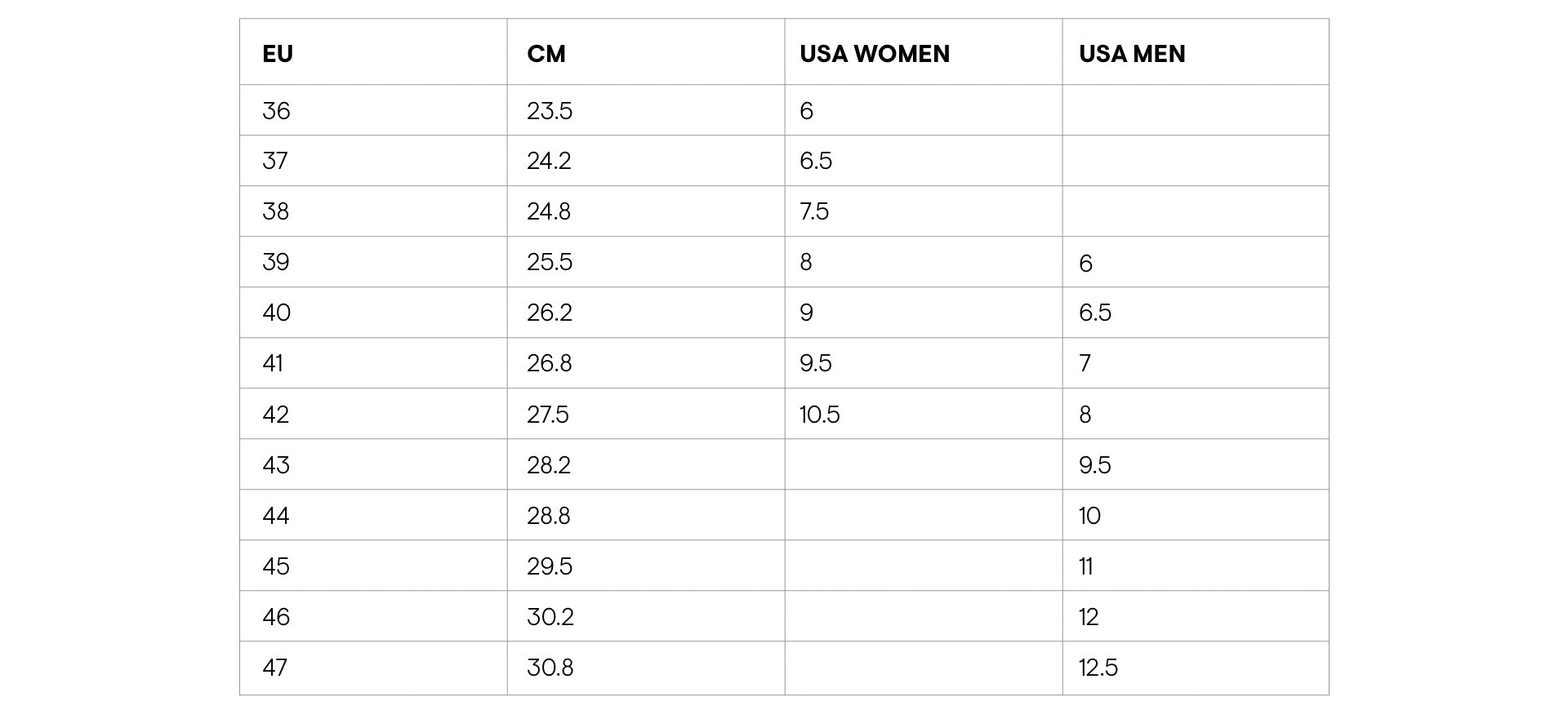 Please note, that normally every brand has a different scale of sizing. We advise you to please measure the length of your feet in cm and convert this on our size guide. If you are between 2 shoe sizes, we recommend that you purchase the larger size.